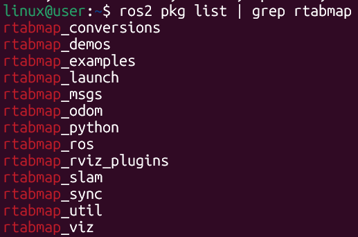 | $ ros2 pkg list | grep rtabmap |