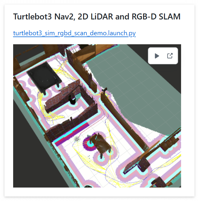 | $ ros2 launch rtabmap_demos turtlebot3_sim_rgbd_scan_demo.launch.py |