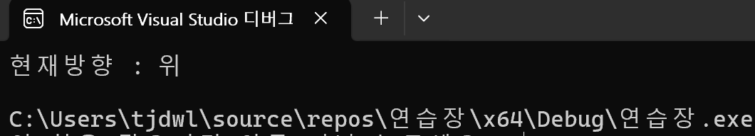 printf("현재방향 : 위\n"); break;