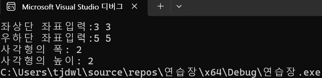 printf("사각형의 폭: %d\n", p2.x - p1.x);