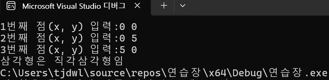 // 4) 구조체 점을 3개 입력받아 직각삼각형인지를 판별하라.