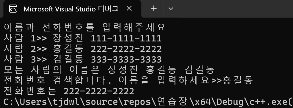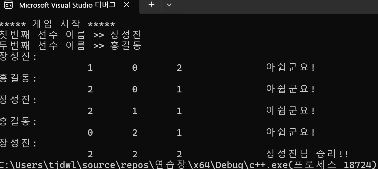 if (x == y && y == z) { cout << p[num] << "님 승리!!"; break; }