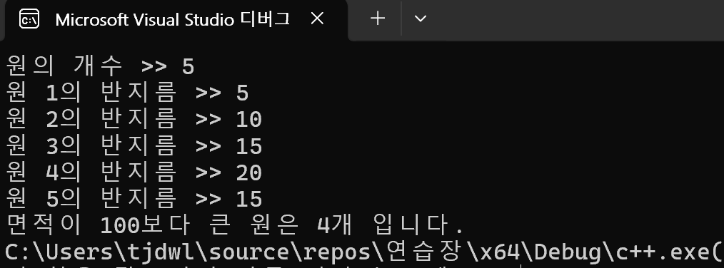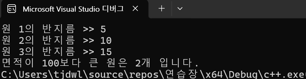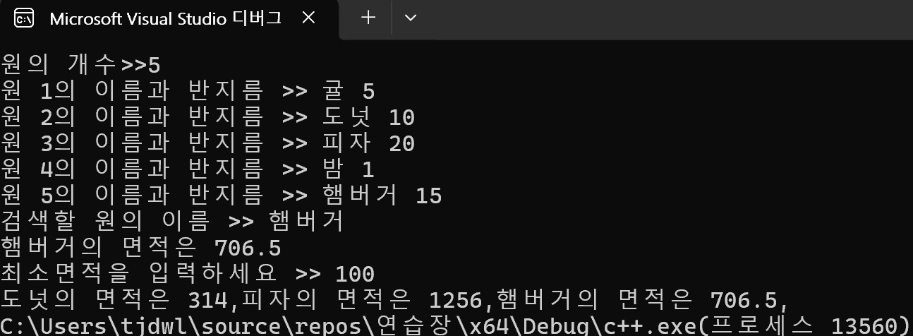 cout << "원 " << i + 1 << "의 이름과 반지름 >> ";