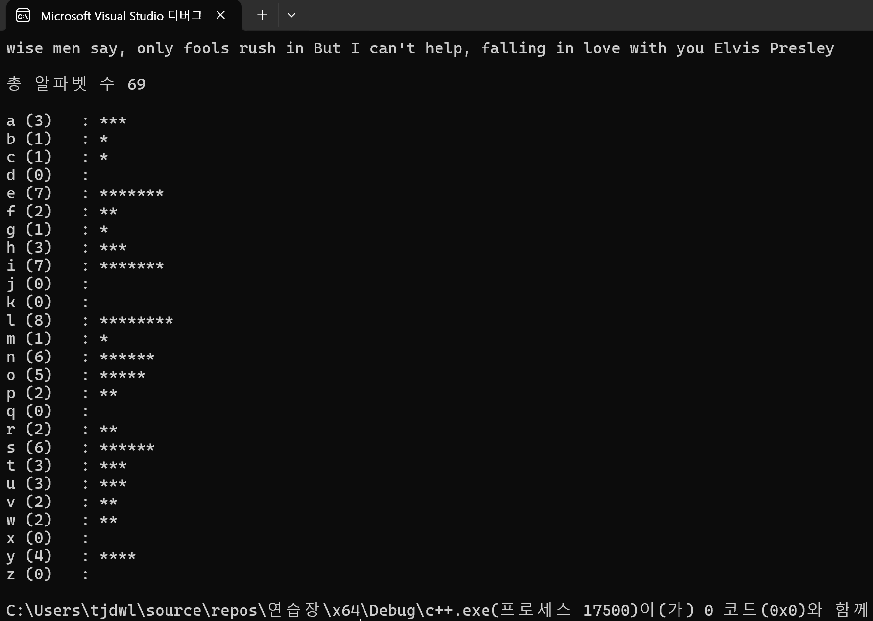 cout << str << "\n\n" << "총 알파벳 수 " << cnt << "\n\n";