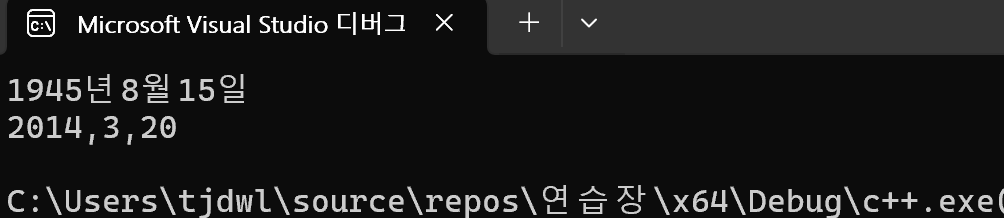 cout << year << "년" << month << "월" << day << "일" << endl;