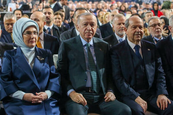 Turkish President Tayyip Erdogan, center, at an event in Ankara, Turkey last month.Credit...Cagla Gurdogan/Reuters