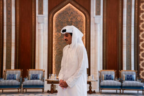Sheikh Tamim bin Hamad Al Thani, the emir of Qatar. Credit...Pool photo by Nathan Howard