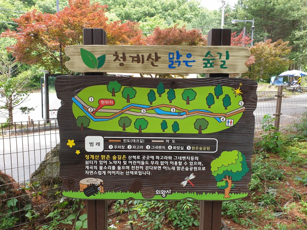- 청계산 공영주차장에서 포장도로를 따라 200m 직진