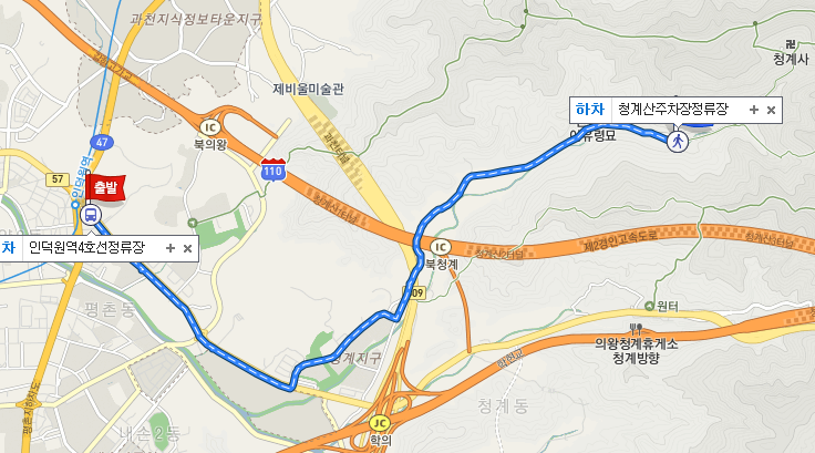 <첨부사진3> 인덕원역에서 청계산주차장 가는 길 지도