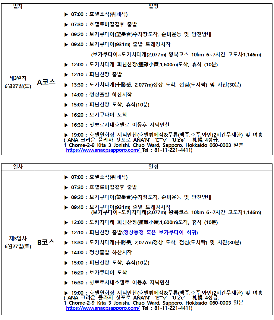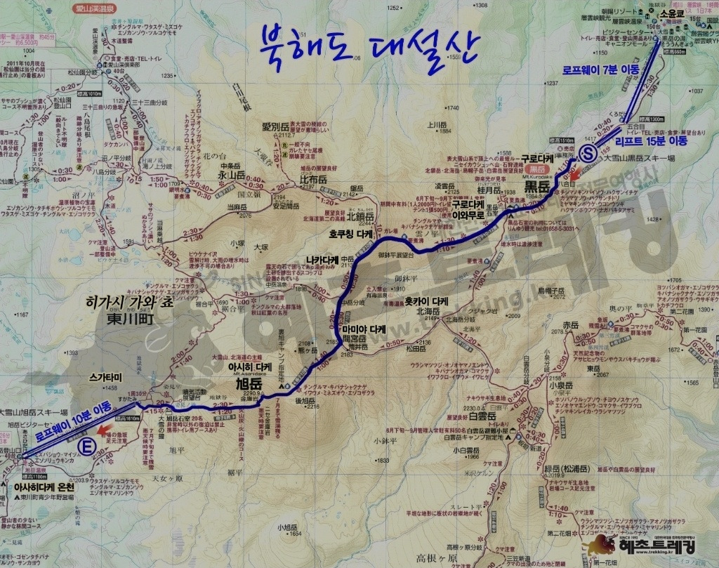 ▶ B코스 아사히다케 정상등정 : 스가타미역 ~ 아사히다케2,291m(원점회귀) 10km 6시간