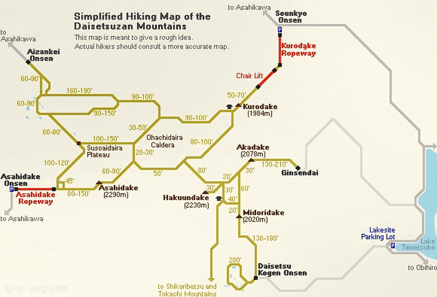 ▶ 대설산(다이세츠)국립공원大雪山國立公園(Daisetsuzan National Park) 전도