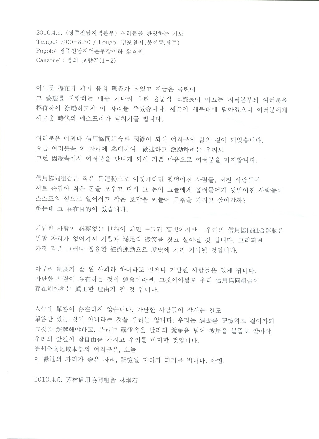 경쟁속을 달리되, 경쟁을 넘어 피안을 볼 줄 알아야.....참 자유로움....임기석 전임 회장님의 환영사입니다. 작성자오손도손|작성시간10.04.06|조회수22 목록 댓글 1 글자크기 작게가 글자크기 크게가 다음검색 현재 게시글 추가 기능 열기 북마크 공유하기 신고 센터로 신고 댓글 댓글 1 댓글쓰기 답글쓰기 댓글 리스트 작성자달마 작성자 본인 여부 작성자 | 작성시간 10.04.09 일부 오타가 있기는 하지만, 임 회장님의 생각과 정성에는 감탄합니다. 건강하세요.... 댓글 전체보기