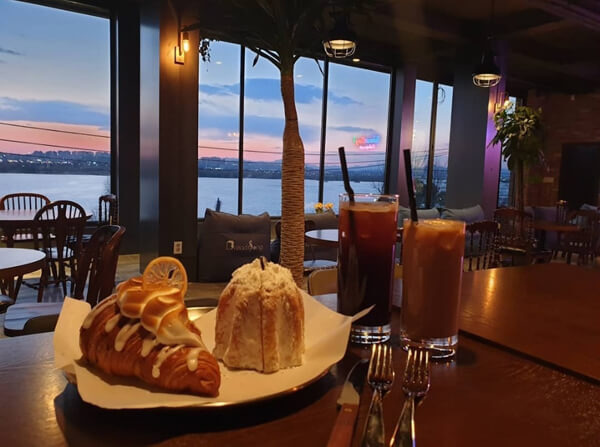 북한강변의 전망을 감상할 수 있는 탁 트인 카페로 야외에 설치된 빈백에 편안히 누워 바깥 경치를 보며 휴식을 취할 수 있다. 음료와 디저트뿐만 아니라 브런치 종류도 많은데 피자와 파스타, 샐러드 등 종류별로 준비돼 있다. 통유리가 설치된 카페 내부나 루프탑, 야외 정원 등 어디에서도 북한강의 고요한 풍경을 제대로 느낄 수 있는 것이 가장 큰 장점이며 조용하고 평화로운 분위기와 심플한 인테리어는 바로 앞에 펼쳐진 강과 아주 잘 어울린다.