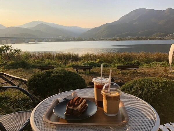 초록의 산과 나무, 강에 둘러싸여 마치 펜션에 놀러 온 듯한 기분을 만끽할 수 있는 카페로 두물머리 가까이에 위치해 있다. 음료는 플랫화이트와 지평리라떼, 오곡 쑥라떼, 과일차 등이 있으며 식빵부터 치아바타, 팡도르, 피칸파이 등 커피와 먹기 좋은 베이커리 들도 다양하다. 카페 내부에서도 강의 풍경을 감상할 수 있지만 넓은 테라스에 야외 테이블들이 많으니 바깥바람을 쐬면서 맛있는 디저트를 즐기는 것을 더욱 추천한다. 카페 바로 근처에 산책로와 공원도 있으니 가벼운 산책을 즐기는 것도 좋겠다.