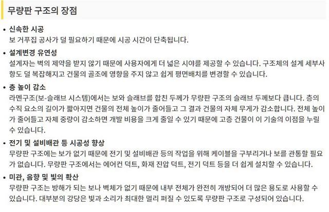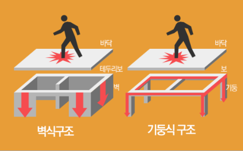 | 공간 효율이 좋다 | 벽식 구조 대비 대부분 층고가 높은편 | 구조가 매우 심플함 |