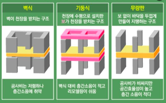 아파트 시공시 구조별로 분명한 장단점이 있고