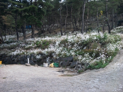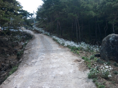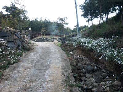 오르막길 바로 옆 집터와 구절초 꽃무리
