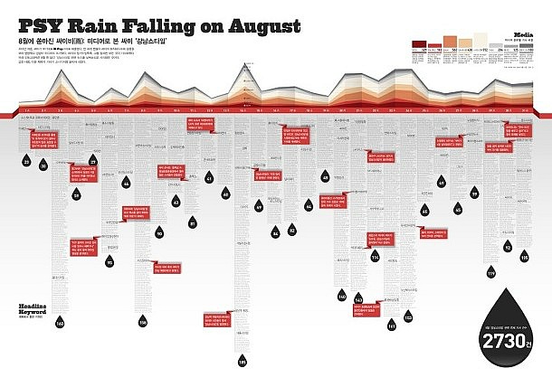 ▲ 8월 미디어로 본 강남스타일 : 싸이의 강남스타일로 알아본 미디어의 호응과 기사를 표현한 인포그래픽