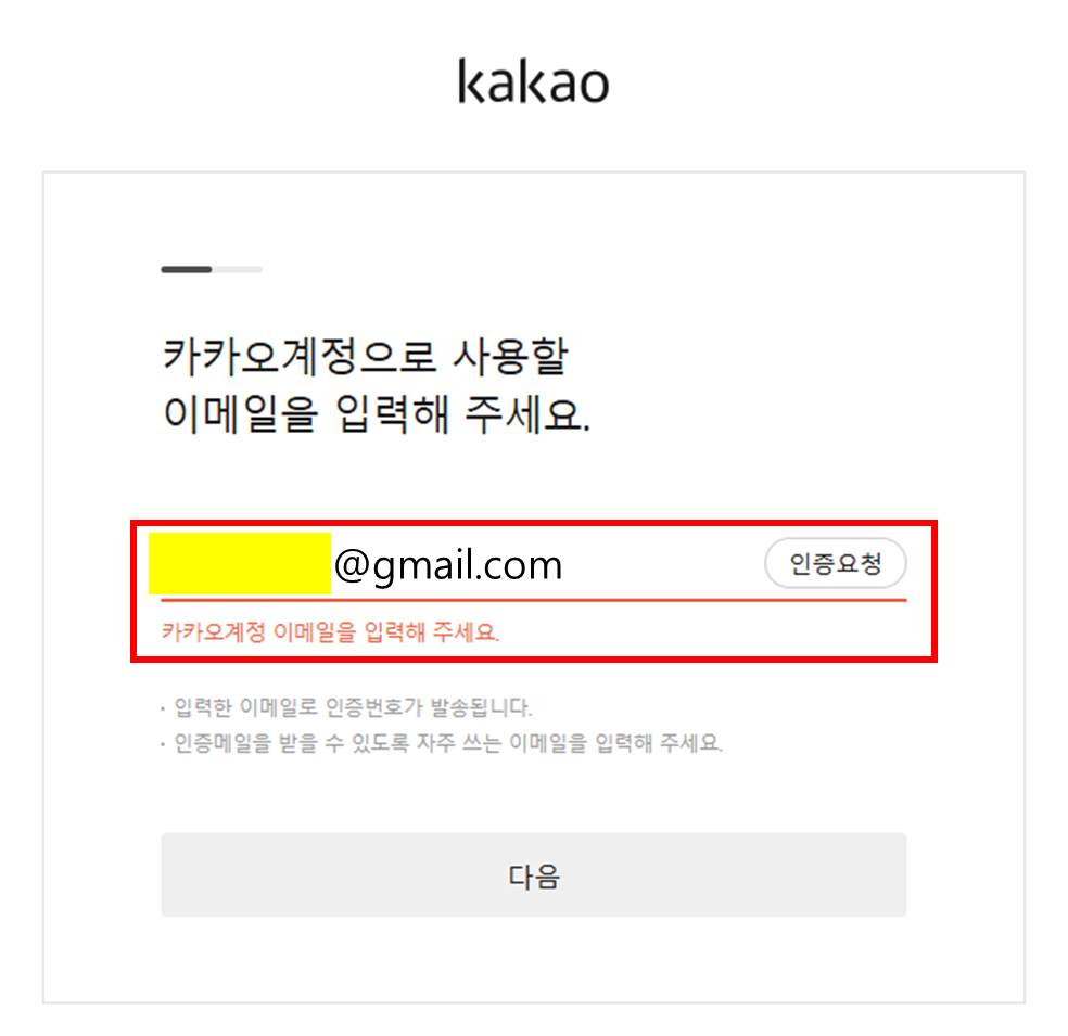 5. 아이디로 사용 할 이메일을 입력 후 인증 요청한다. 5. Enter the email to use as the ID and request authentication. 5. IDで使用するEメールを入力した後、認証を要請する。