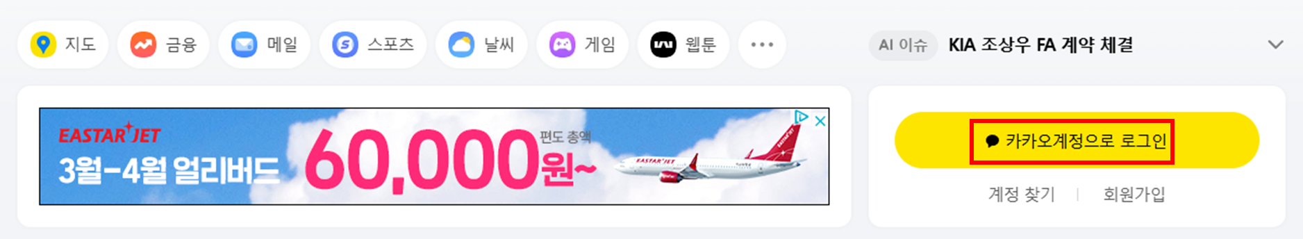 1. 다음(daum.net) 접속하여 '카카오 계정으로 로그인' 클릭 1. Access the following (daum.net ) and click 'Log in with Kakao Account' 1. ダウム(daum.net )にアクセスして「カカオアカウントでログイン」をクリック