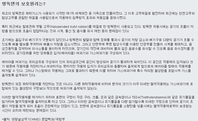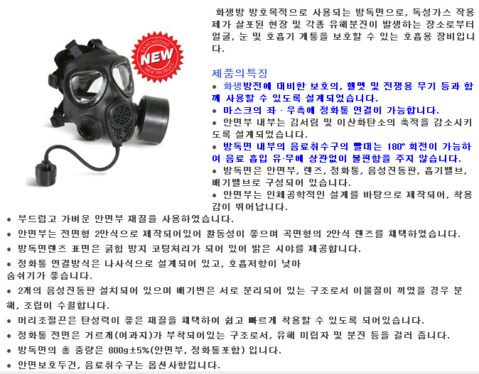 이상으로 혹시 개인적으로 방독면을 구입하고자 하시는분은 참고하십시오.