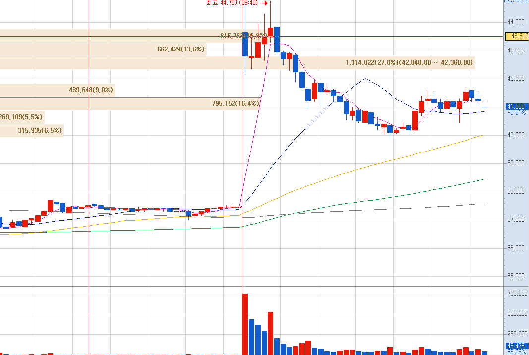 발표나고 개미들이 몰렸을때 일부 물량을 턴것으로 판단이 되는데