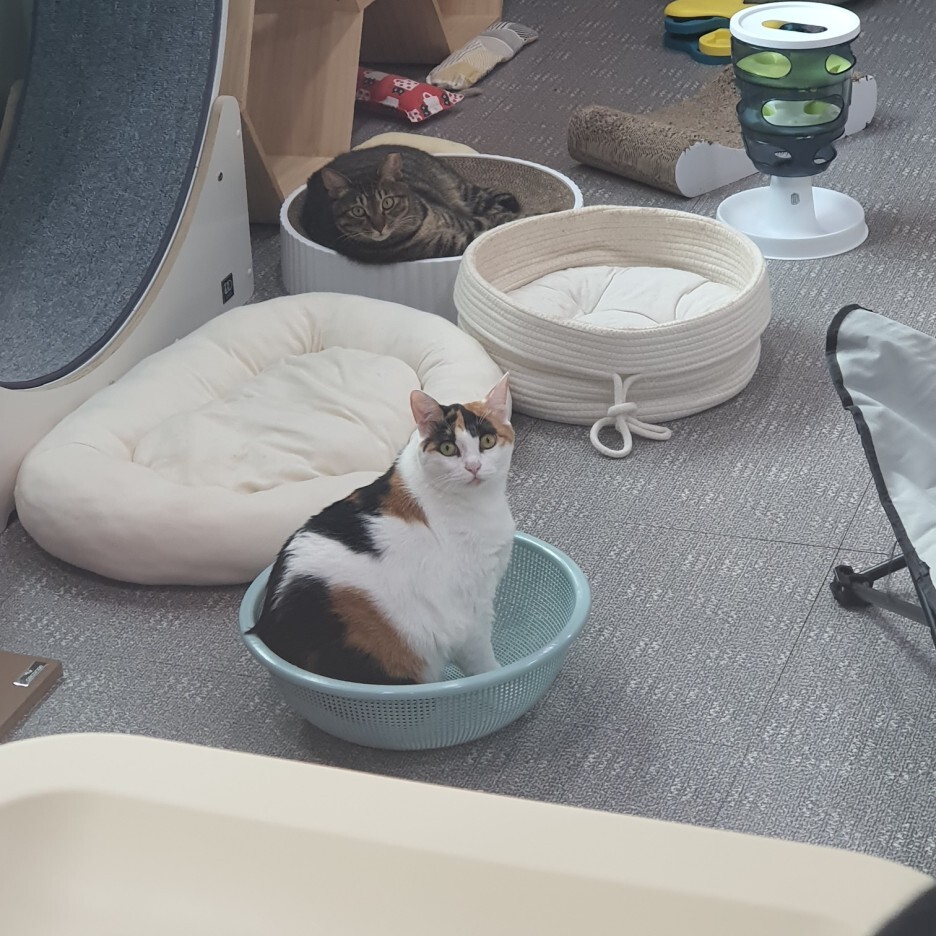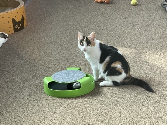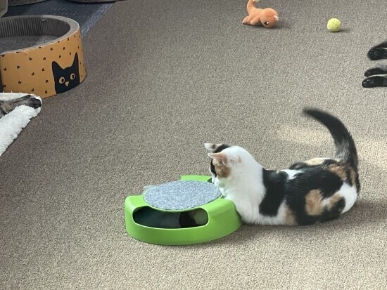 사람을 무서워 함 / 캣휠타기 좋아함 / 다른 고양이들과 친화력 좋음