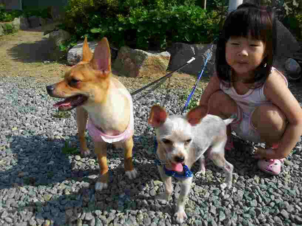 입양자 댁의 따님과 친구 강아지와 행복하게 지내는 요키 완봉이