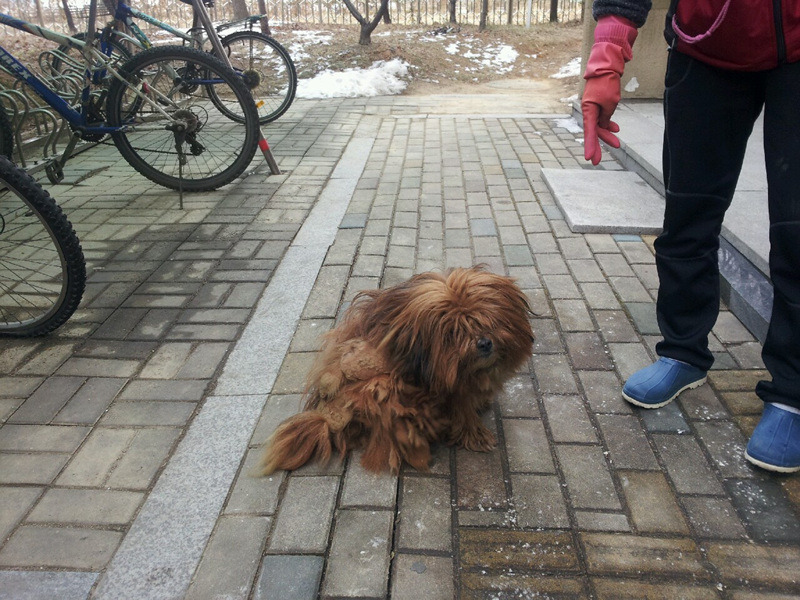 이 강아지는 제가 아파트 환경미화원으로 일하는 경기도 부천시 오정구 오정동 오정 휴먼시아 아파트 단지 내에서 3개월 전에 발견한 유기견입니다. 보시다시피 집 나온지가 너무 오래된 강아지이고, 한참 날씨가 추워질 때 떨고 있는 것이 불쌍해서 나름대로 제가 할 수 있는 사료를 챙겨주는 일 등을 하였으나,