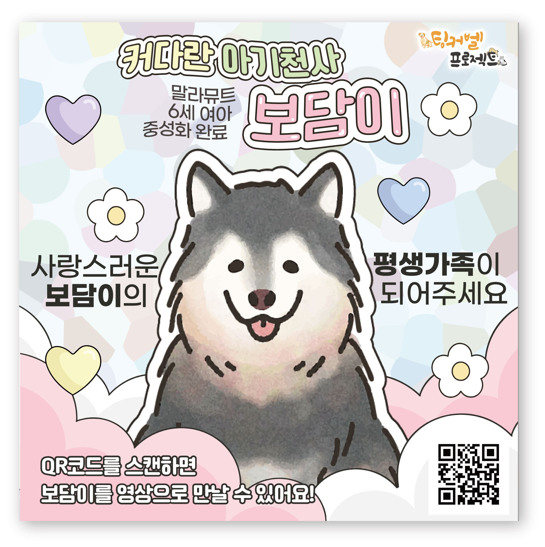 [동의요청] 말라뮤트 보담이의 입양 홍보를 활성화하기 위해 올라펫과 보담이 홍보 제품을 시도해보려고 합니다.
