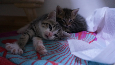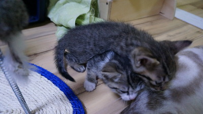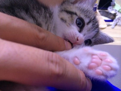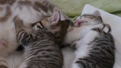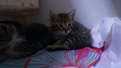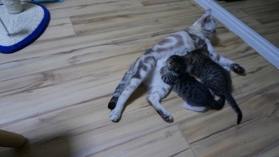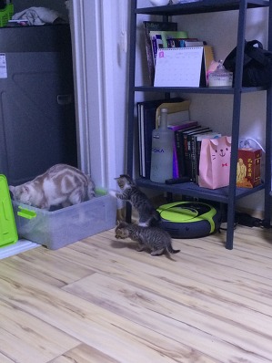 그동안은 오목이가 두 아가냥들 배변을 다 처리했기 때문에