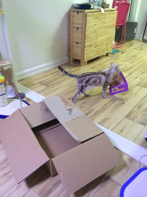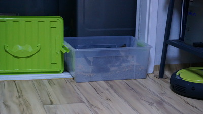 제가 사료 소분해서 보관하느라 바닥에서 작업을 했는데