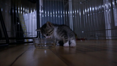 그러던 어느날! 오목이 사료먹는 모습에 관심을 보이길래