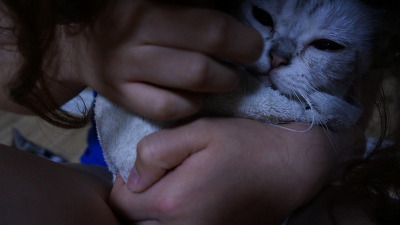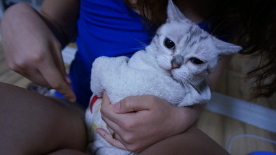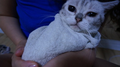 하도 저항이 심해서 수건으로 몸을 감싸 안고 넣어줬더니