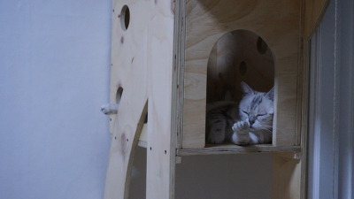 지지난주에 만든 캣타워 순찰중인 오목이