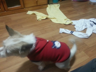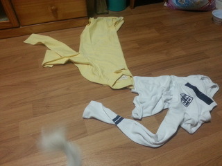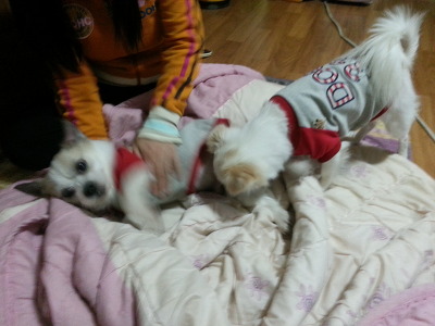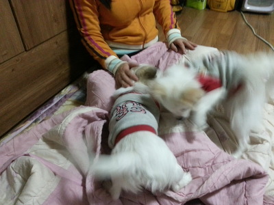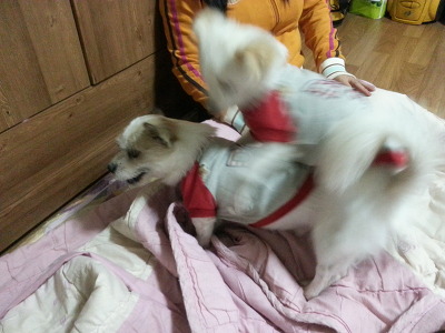 림보쭌엄마가 아빠 입힌다고 사다 놓은 새 옷들에게 이 두 녀석이 합동 화풀이... ㅠㅇㅠ