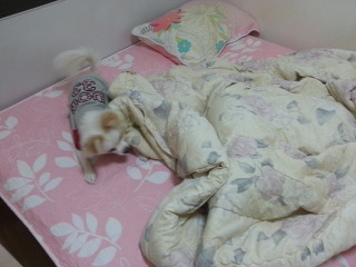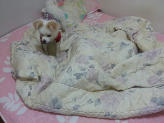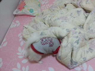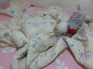 울 림선비 림보... 귀찮게 하는 쭌이 얼마나 싫었으면... 아빠 아침에 샤워한다고 침대방을 나가니 쭌 피해서 이불 정중앙에 딱 자리 잡아버리네요... ^&^;;;