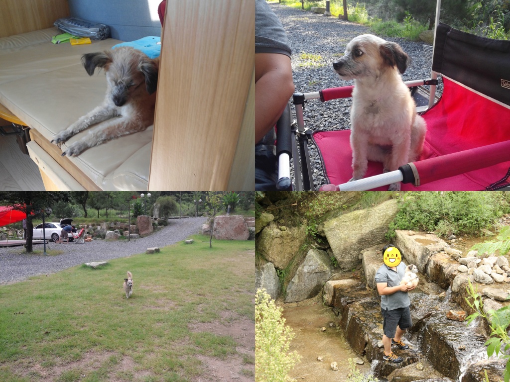 열심히 뛰어 놀고, 차에서 졸고, 아빠랑 계곡에 잠깐 들어갔다 오고! (여기서 무서운 진드기 친구들을 만나게 됩니다.ㅜㅜ)