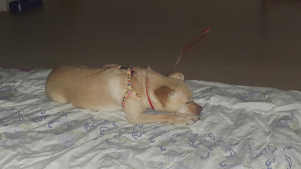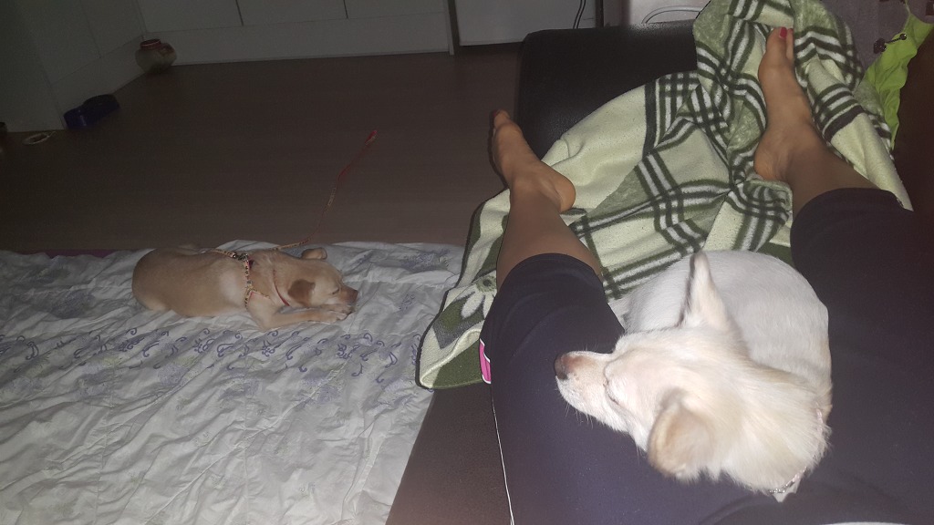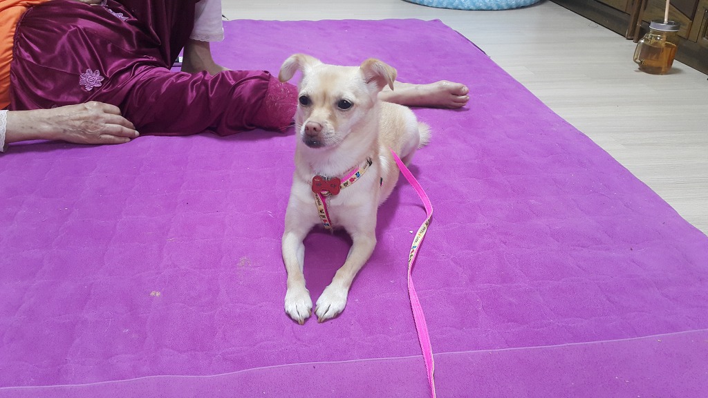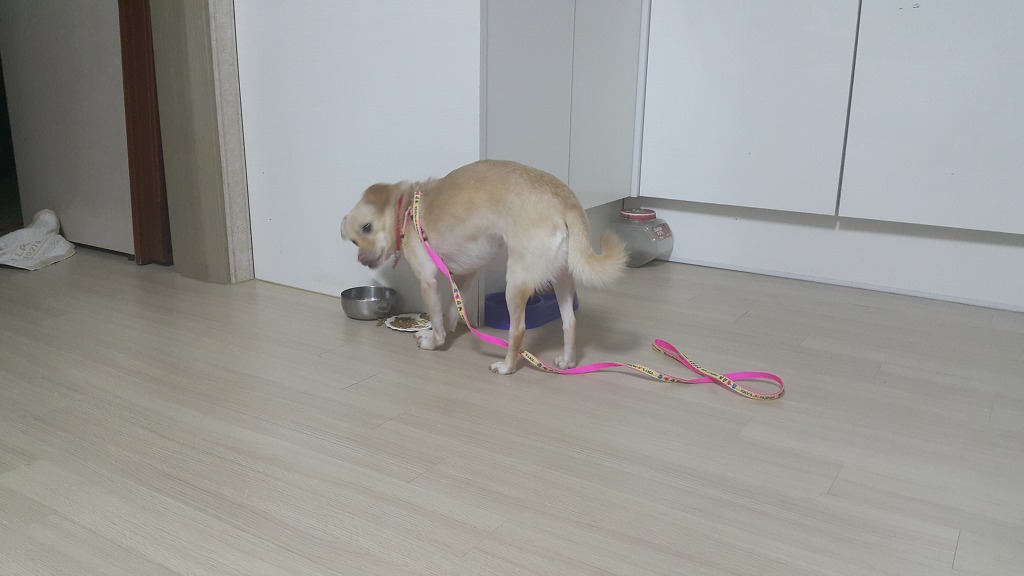 참고로 목줄은 아직 예민해서 못 벗기게해서 당분간 두려구요..글고 제 다리는 사진을위해 어쩔수없이 올린거니 너무 욕하진 말아주세요~
