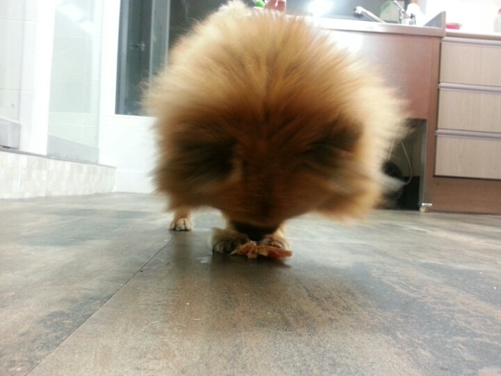 귀엽죠?^^ 순심이는 육포를 아예 등돌리고 먹었어요