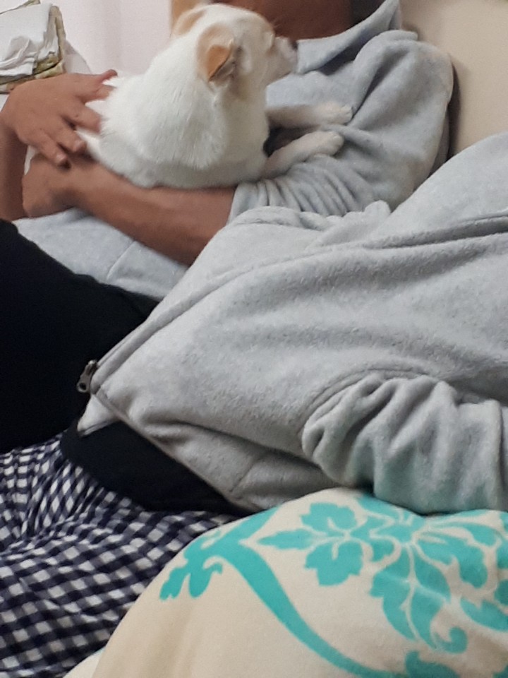 아버지하고는 아직 조금 어색하지만 으르렁이 없어졌어요. 요새 아버지가 일 때문에 바빠서 집에 거의 없어 친해지기가 조금 어려워요 ;( 하지만 산책은 한두번 혼자 나갔다왔는데, 그 이후로는 짖고 으르렁이 없어졌어요. 꼬마는 남자가 무서운 것 보다는 등치가 큰 사람, 짐을 많이 들고 소리가 많이 나는 사람을 무서워해요. 근데 또 엘러베이터에서 만나는 음식 배달분들은 아무렇지 않아요. 오히려 음식 냄새에 호기심을 보임ㅋㅋ