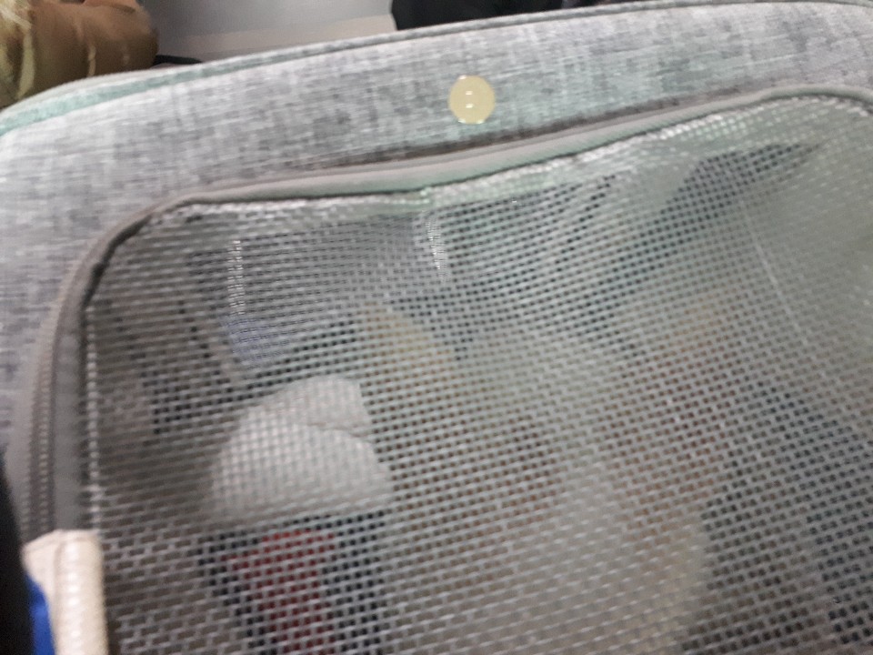 이동 가방은 스스로는 들어가지는 않아요, 하지만 넣어주면 낑낑 없고 잘 있어요 :) 버스하고 지하철에서도 조용히 간식 먹었어요
