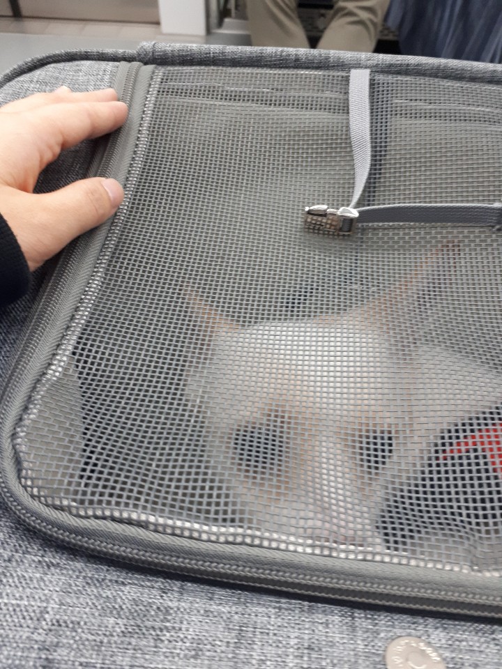 이동가방에 안겨서 버스도 타고 세상구경 했구나~