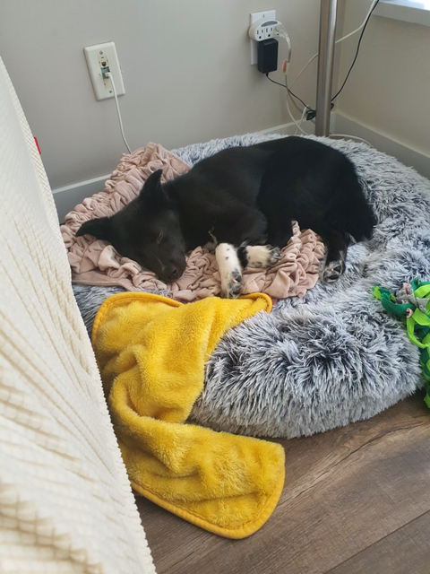 자기 자리에서는 만져도 피하거나 덜덜 떨지는 않아서 하루에 적어도 한 번은 범이를 쓰다듬으며 같이 누워있어요.
