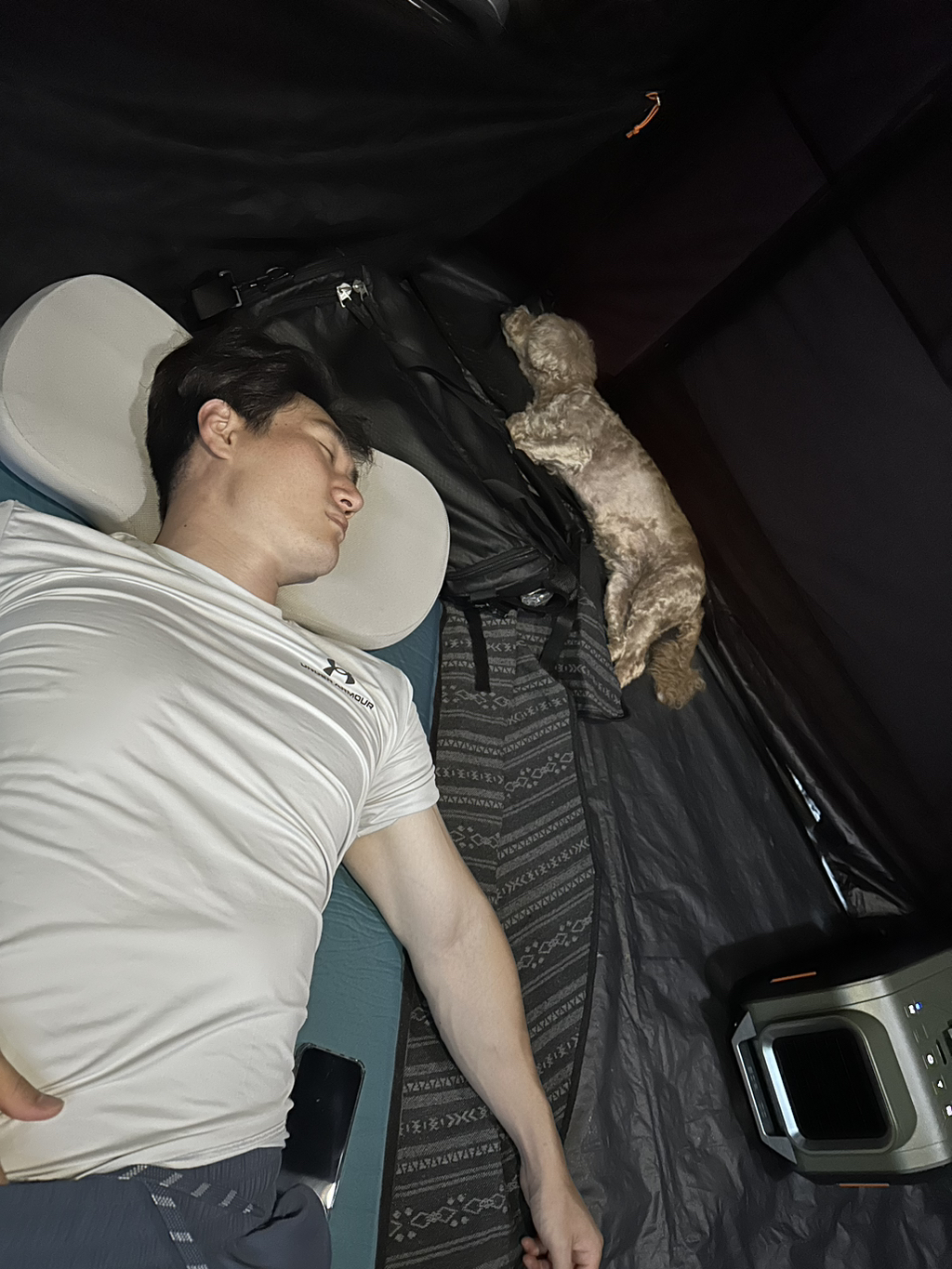 수영 후 바로 캠핑장 갔는데 둘다 기절을 했지 뭐에요 하하하