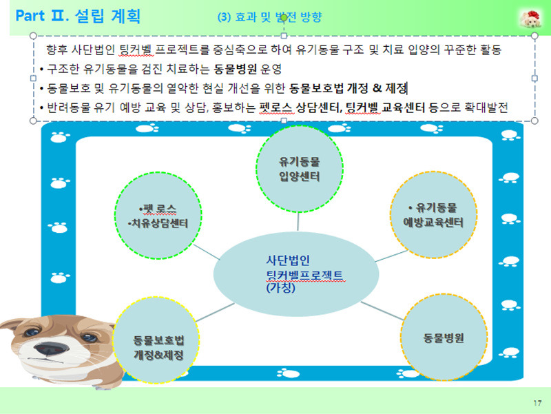 유기동물 입양센터의 역할은 기존에 팅커벨 프로젝트에서 하던 일을 보다 더 체계적이고 조직적으로 해나간다고 생각하면 될 것입니다.