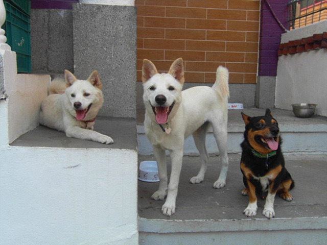 함께 공존하는 개.. 뚱아저씨네 흰돌이, 흰순이, 럭키의 개웃음