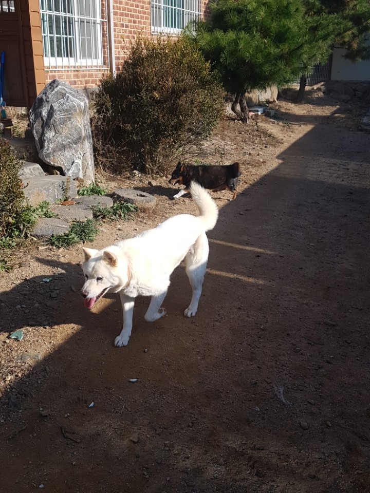 뚱아저씨네 마당에서 놀고 있는 백구 순돌이. (어제 찍은 사진)
