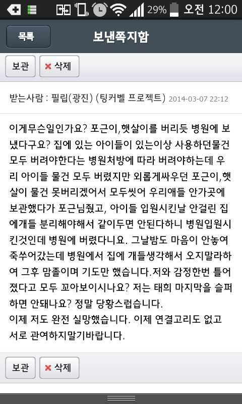 배변훈련 안되어 있는 행복이 땜에 온집안에 똥밟아놓아 엉망인거 치우고 주변 민원에도 끝까지 울면서 손편지로 이웃들께 양해 구하며 입양가는 날까지 마음으로 정성으로 보냈습니다