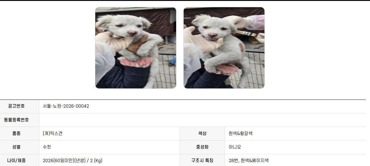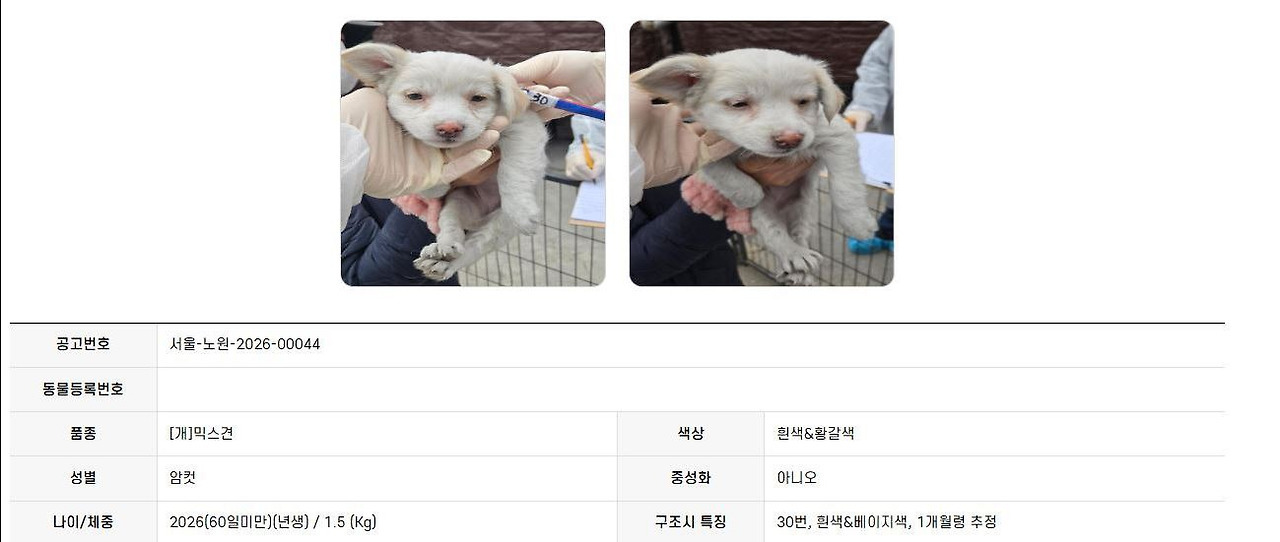 두번째 아가 : 남아. 3개월 (공고 당시보다 1개월 더 큼)